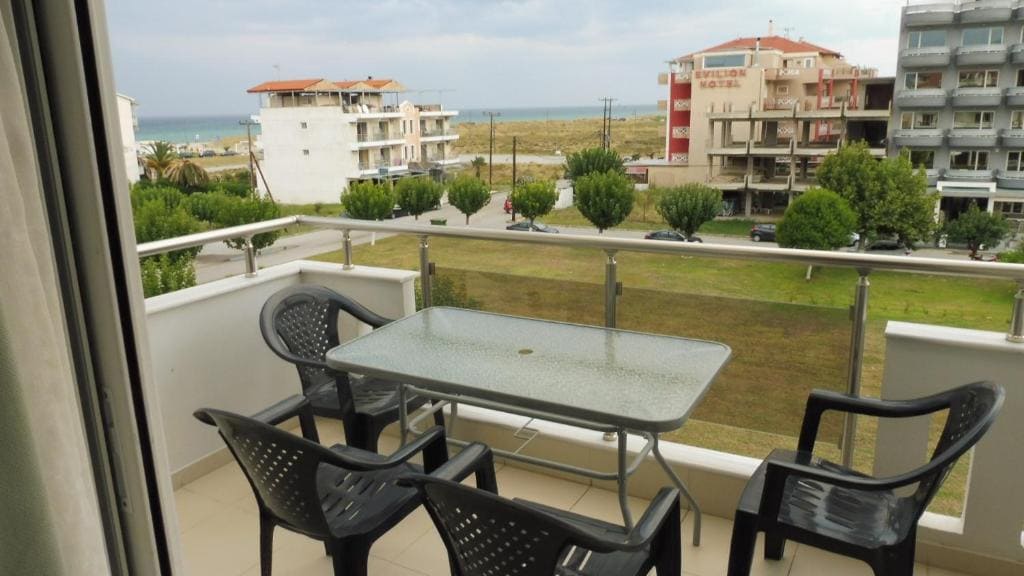The Superior Double Studio on the 2nd floor offers a bright and cozy space ideal for couples. It features a comfortable double bed, a fully equipped kitchenette, a modern bathroom, and a private balcony with sea view. Enjoy A/C, free Wi-Fi, Smart TV, and easy access to the beach and promenade—perfect for a relaxing seaside getaway.