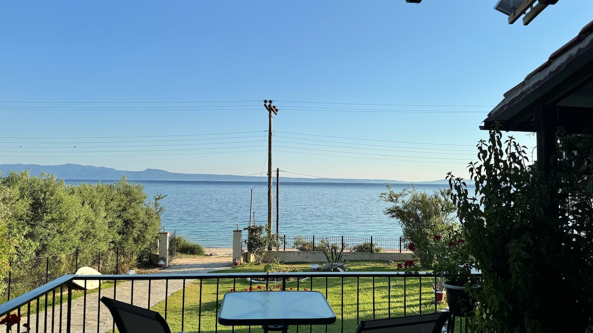 The villa is situated in front of one of the most beautiful, sandy beaches of Chalkidiki, in the second peninsula! Beach front, and close to everything that you will need while on holidays! Cafe bars, super market, restaurants are located in less than 1 kilometers We hope that our guests will feel like home. Our house is ideal not only for a family but also for larger groups of friends. The house is also friendly for families with kids as there is a lot of space for them to play.