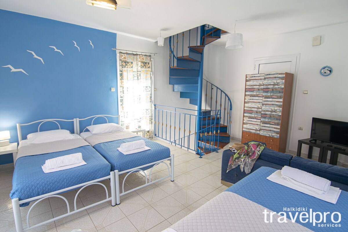 Twin Castles Maisonettes by RentalsPro Services in Kriopigi, Halkidiki is located 600 meters from the beach and offers a beautiful garden and terrace for its guests. The accommodation is air-conditioned and has a balcony and free Wi-Fi. The accommodation has a flat-screen TV, a bathroom and a fully equipped kitchen with a fridge. There is also an oven, hob, toaster and kettle. You can also rent a car from the property. The nearest airport is Thessaloniki Airport, 83 km away.