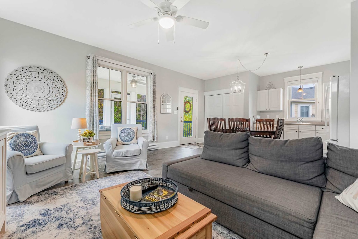 Get ready to park the car and leave it in the driveway for a getaway at this charming and cozy, 100 year old beach cottage. Completely updated furnishings and appliances bring a modern touch to a classic by the beach. Step out the door and you’re a half block from Main St., Sylvan Beach and less than 2 blocks to the water. Enjoy shopping, dining and exploring without the hassle of finding or paying for beach parking. Getting in the car at the end of your stay might feel awkward!
