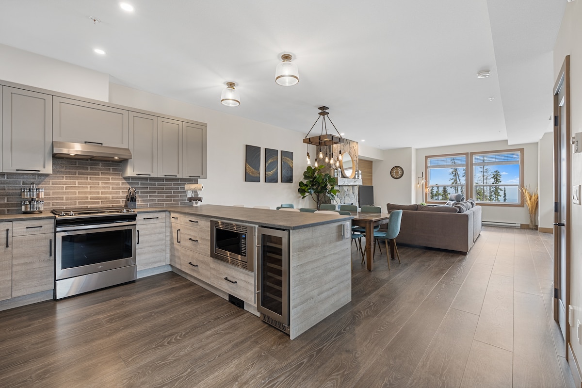 Our beautiful Chalet is a great place to enjoy your vacation at Big White. Built in 2020, and has that new and peaceful feeling. Our unit boasts tall ceilings as well as a beautiful kitchen complete with a wine fridge. When you want to relax, there is a gas fireplace or private hot tub for you to use. There is also plenty of parking with room for 2 cars outside and 2 spaces in the garage. We have added a lounge room toe the main level so that there is more than one space for families to relax