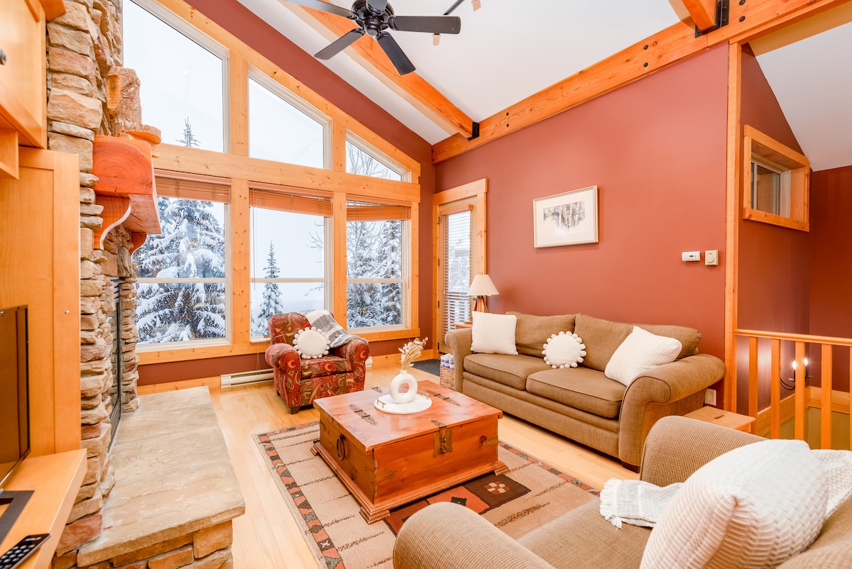 Cozy Ski-In/Ski-Out Townhouse at Big White Ski Resort Escape to this stylish Ski-in/Ski-out cabin at Big White Mountain, just a 20 minute walk to the village! Perfect for families and pets, it features two cozy bedrooms, a full bathroom (no half bath), and two rollaway cots, sleeping up to 6. Enjoy a fully equipped kitchen, and free parking. Relax around the outdoor fire pit for s'mores and mountain views, with tie-ups for your furry friends. Your ultimate alpine getaway awaits!