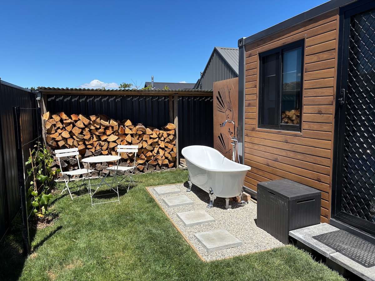 This unique place has a style all its own. Come and enjoy some peace and quiet admiring the outstanding views of Mount Benger in your own wood stoked stainless steel hot tub. The hot tub will be filled with fresh water and heated on request. There are several outstanding cafes locally along with the beautiful Clutha Gold Cycle trail. The Millers Flat Tavern is open for meals Pinders Pond is a local swimming attraction. Highland Bike hire in Roxburgh has ebikes for hire.