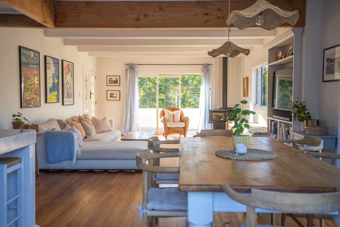 Tucked down a quiet lane on an acre and a half of beautifully landscaped gardens, this cozy four-bedroom home is the perfect place to unwind. With plenty of space and modern comforts, it’s ideal for families or groups — sleeping up to 9 adults or 2 families with kids. A brand-new outdoor barrel sauna awaits — the ultimate way to relax and recover after a day skiing or exploring the mountains.