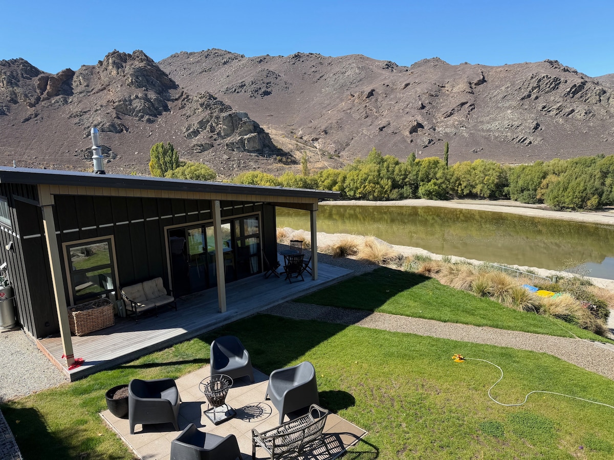 This picturesque lodge offers the best accommodation and location in Lake Wānaka. Amazing outdoor amenities . Imagine soaking in a hot tub overlooking the picturesque views of the Hawea river as you unwind and relax after a long day of fishing and adventure. An outdoor boathouse provides the perfect spot to enjoy a delectable meal as you relish the peaceful sounds of the river, native birds and bask in the serene tranquility of the surroundings. Newly renovated house, warm, family friendly .
