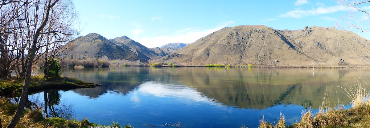 This modern, well appointed apartment in Albert Town, Wānaka, is alongside the Clutha River and 3.5 km (5 minute drive) from the Wānaka township. The apartment is adjacent to a selection of walking and biking tracks accommodating all levels of fitness. The apartment itself offers a safe environment within a complex that includes a tavern, a patisserie, a general store and a public laundry. Your hosts, Marty and Jane, live close by and can provide local advice and support if necessary.