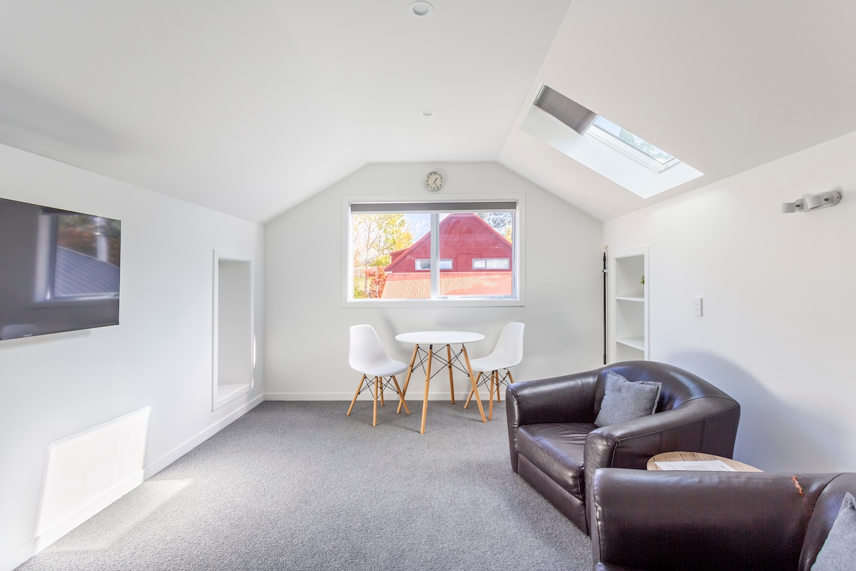 Self contained loft apartment split over two levels with queen bed, living & kitchen space upstairs, with view of the iconic Judge and incredible sunsets towards Coronet Peak. You enter via a large laundry/mud room, into the passage & bathroom area. The entire downstairs has underfloor heating, with all new fixtures & fittings. This is the perfect winter hide out for a skiing vacation with 3 fabulous ski fields all within 30min drive. Due to the stairs, we do not allow bookings with kids - sorry