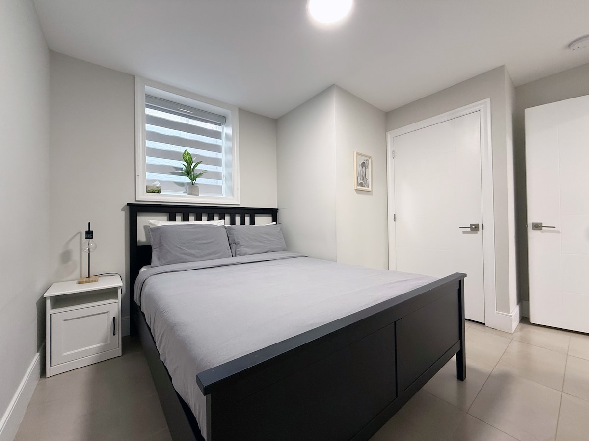 *Long term discount* *pls check the availability before booking* *Sufficient Free street parking* Oasis in the city center, enjoy both convenience and nature. We are ideally located in a safe and convenient neighborhood, 3 minutes driving to Metropolis that have sky train station, many shops,supermarkets,restaurants. This new Renovated suite in half basement , private and cozy. For booking Pls provide: Purpose of visiting , Arrival time, The numbers of guests. Thanks :)