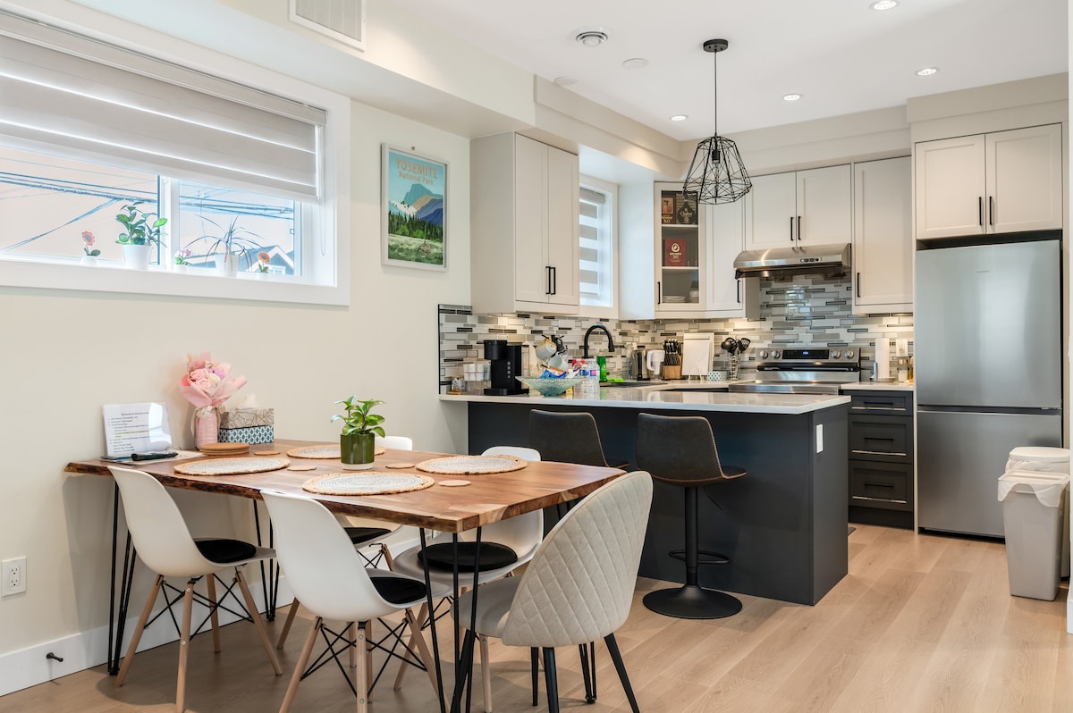 *Long term discount* *pls check the availability before booking* *sufficient FREE street parking* Oasis in the city center, enjoy both convenience and nature. We are ideally located in a safe and convenient neighborhood, 3 minutes driving to Metropolis that have sky train station, many shops,supermarkets,restaurants. This new Renovated suite in half basement , private and cozy. For booking Pls provide: Purpose of visiting , Arrival time, The numbers of guests. Thanks :)