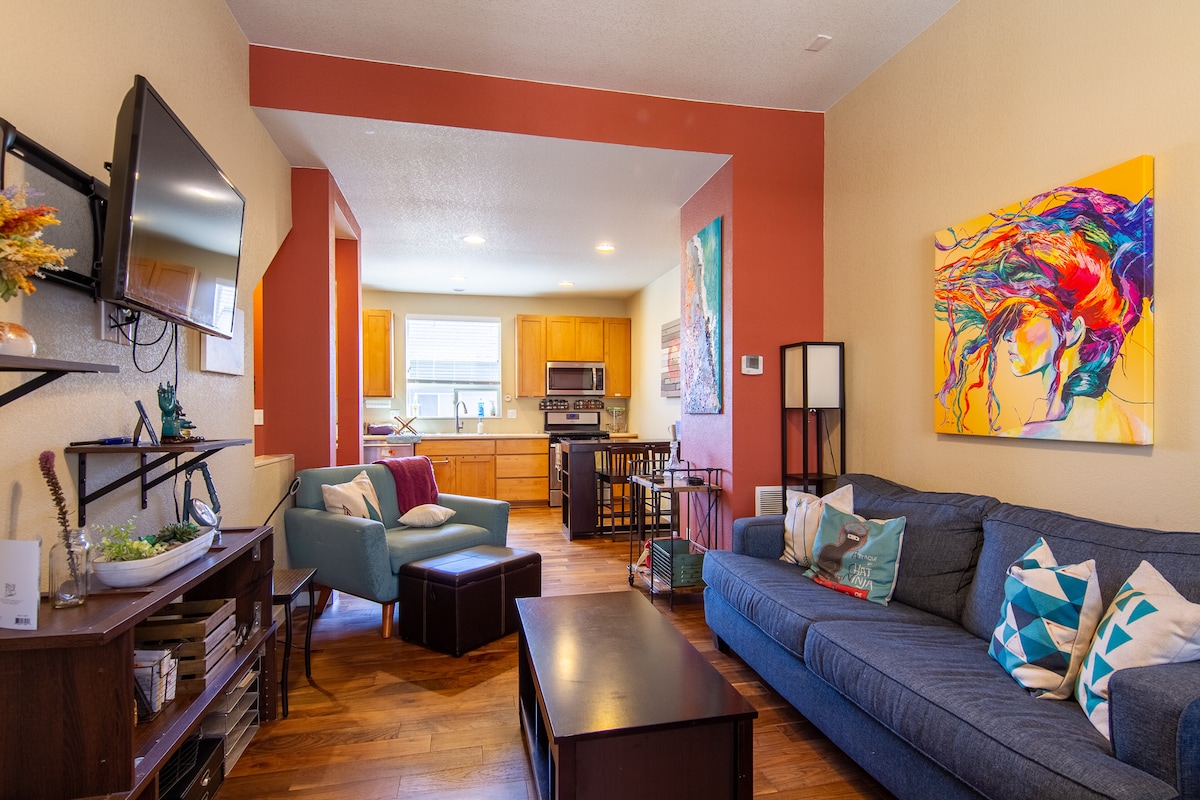 *** Beautiful, Modern Home in a Prime Location*** Our home offers an ideal vacation home for a short & long stays. Luxurious and upgraded, this two-bedroom, 2.5 bathroom townhouse is located within a minute's walk to restaurants, shopping centers, parks and is only a 15 minute drive to downtown Denver & airport. This home is equipped with the highest standards. Our guests experience super cozy beds, clean sheets & towels, fully equipped kitchen, laundry room and cleaning supplies.