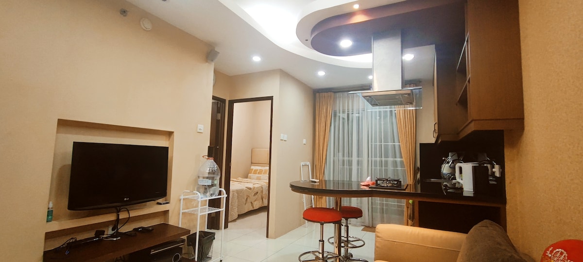 Access Central Park Mall. Free parking. Clean. Pool, jacuzzy, gym. Playground. Wifi, cable tv. Drinking water. Microwave, mini electric pan, rice cooker. Fridge. Washing machine, detergent. Ironing kit. Baby bath, high chair (pls notify us). Flexible checkin/checkout (minimum stay 2 nights). Booking at least D-2. We always replace all the used/unused sheets after guests left (bed sheets, sofa sheet, pillow sheets, towels, blankets, bed cover, floormat). Washed by profesional laundry service.