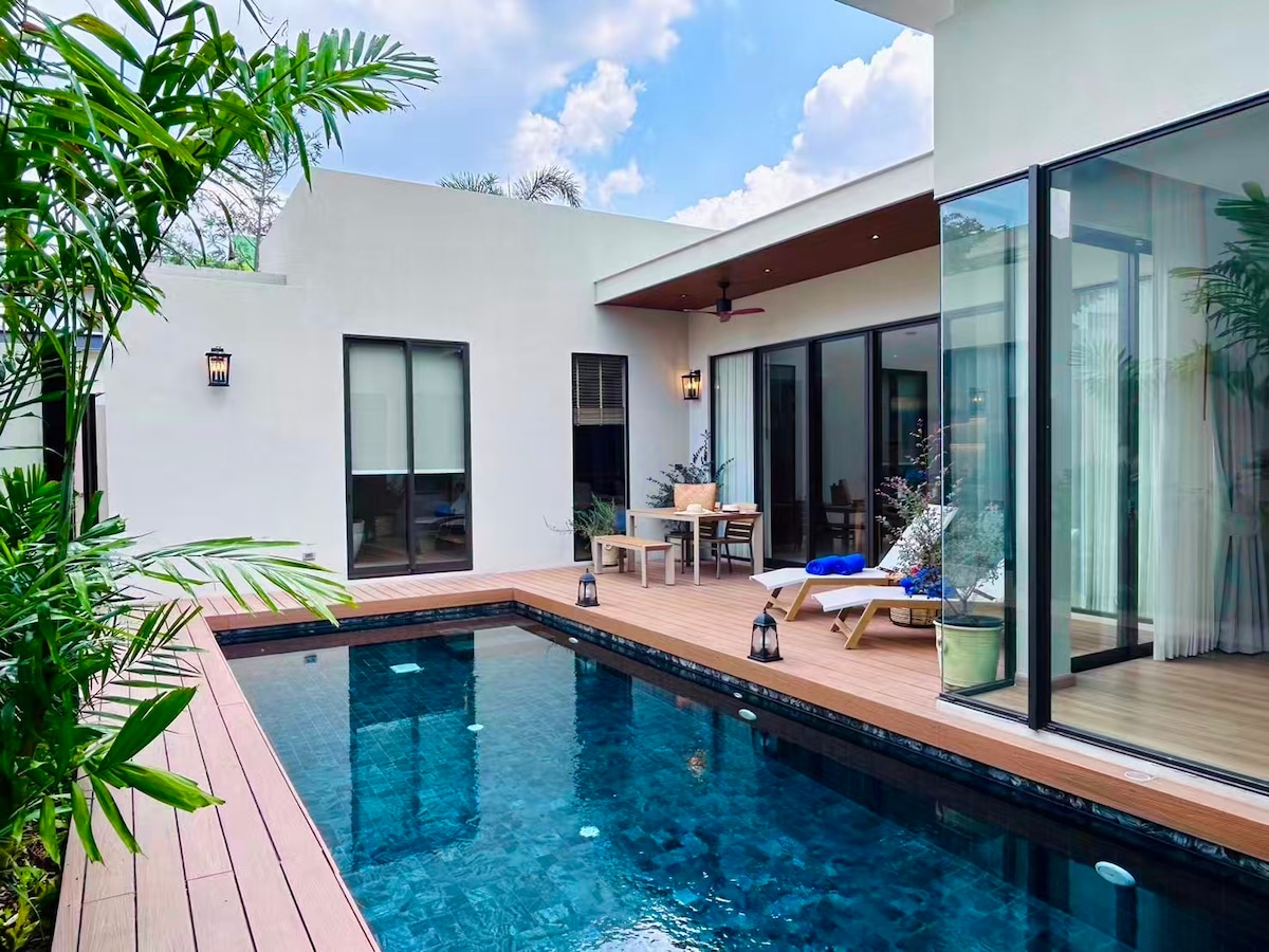 🏡TW泳池别墅 – 现代奢华风格 欢迎来到TW别墅,这是一处融合现代舒适与精致设计的度假空间。无论是家人团聚还是朋友聚会,这里都能为您带来惬意与难忘的住宿体验。 ✨ 舒适空间 单层别墅,建筑面积约160平方米,设有4间卧室和5间浴室。每间卧室均配备独立卫浴,另设一间客用浴室,格局合理,入住体验更为舒适。 🛏 卧室配置 四间卧室中,三间配有1.8米大床,一间配有1.5米床,满足不同入住需求,适合家庭或朋友共享美好时光。 🍳 厨房与餐饮 厨房设施齐全,配备全套烹饪设备,让您轻松下厨,享受居家般的便利与温馨。 🏊 私人泳池 别墅配有私人泳池,水质清澈,是您畅享清凉与放松的理想之地。并提供每周三次清洁服务,确保环境洁净舒心。 🔥 户外休闲 别墅设有烧烤炉及宽敞的户外聚会空间,非常适合与亲友共度欢乐的派对时光。 📺 娱乐设施 每间卧室均配备独立电视,客厅另设大屏幕电视,全屋覆盖高速无线网络,带来丰富便捷的娱乐与连接体验。 🎨 现代风格 别墅采用现代奢华设计风格,简约大气,兼具舒适与优雅,让您的假期更加惬意。