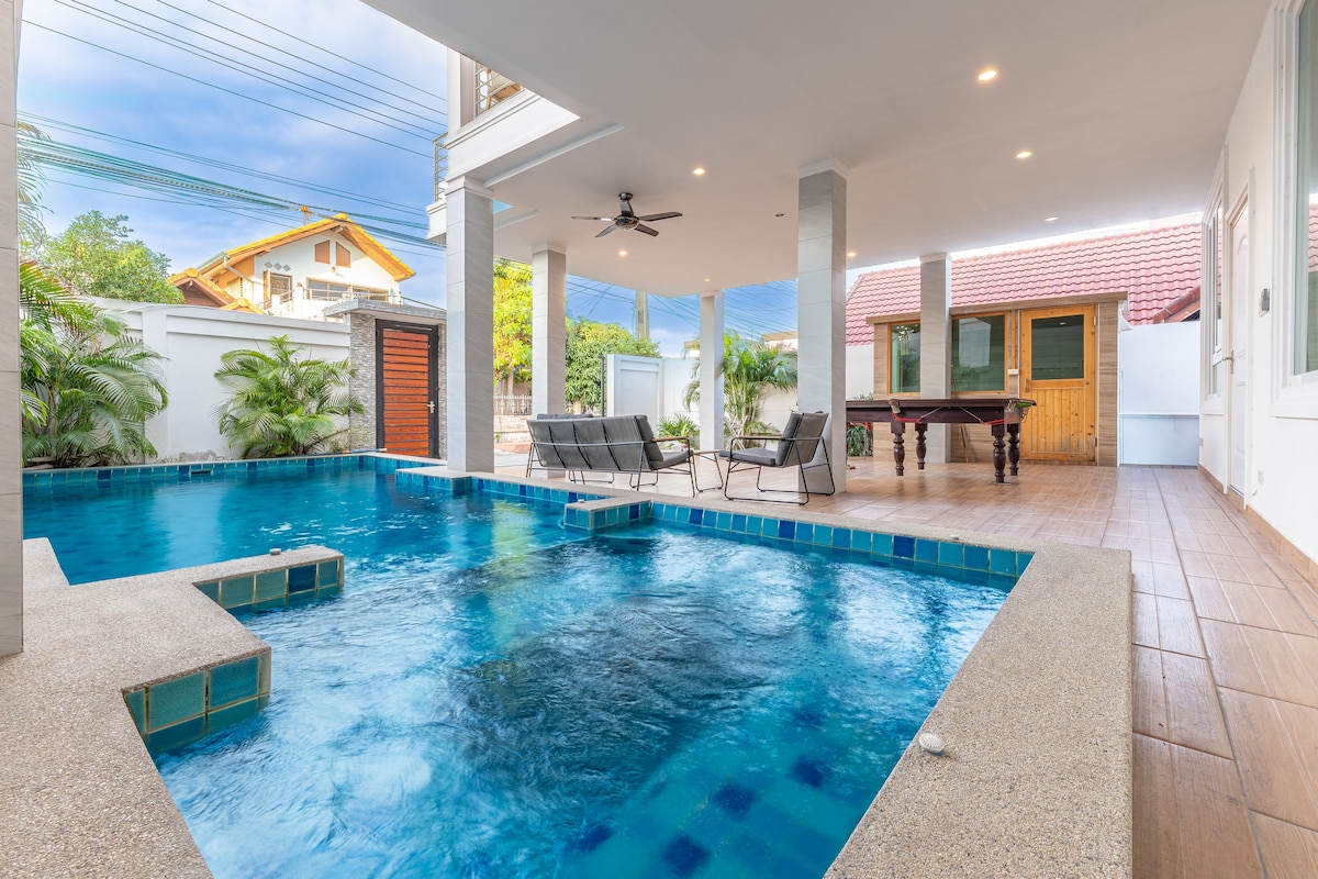 芭提雅步行街附近独栋4卧5卫带桑拿房的泳池别墅S2(可提供漂浮早餐和烧烤服务需另付费)