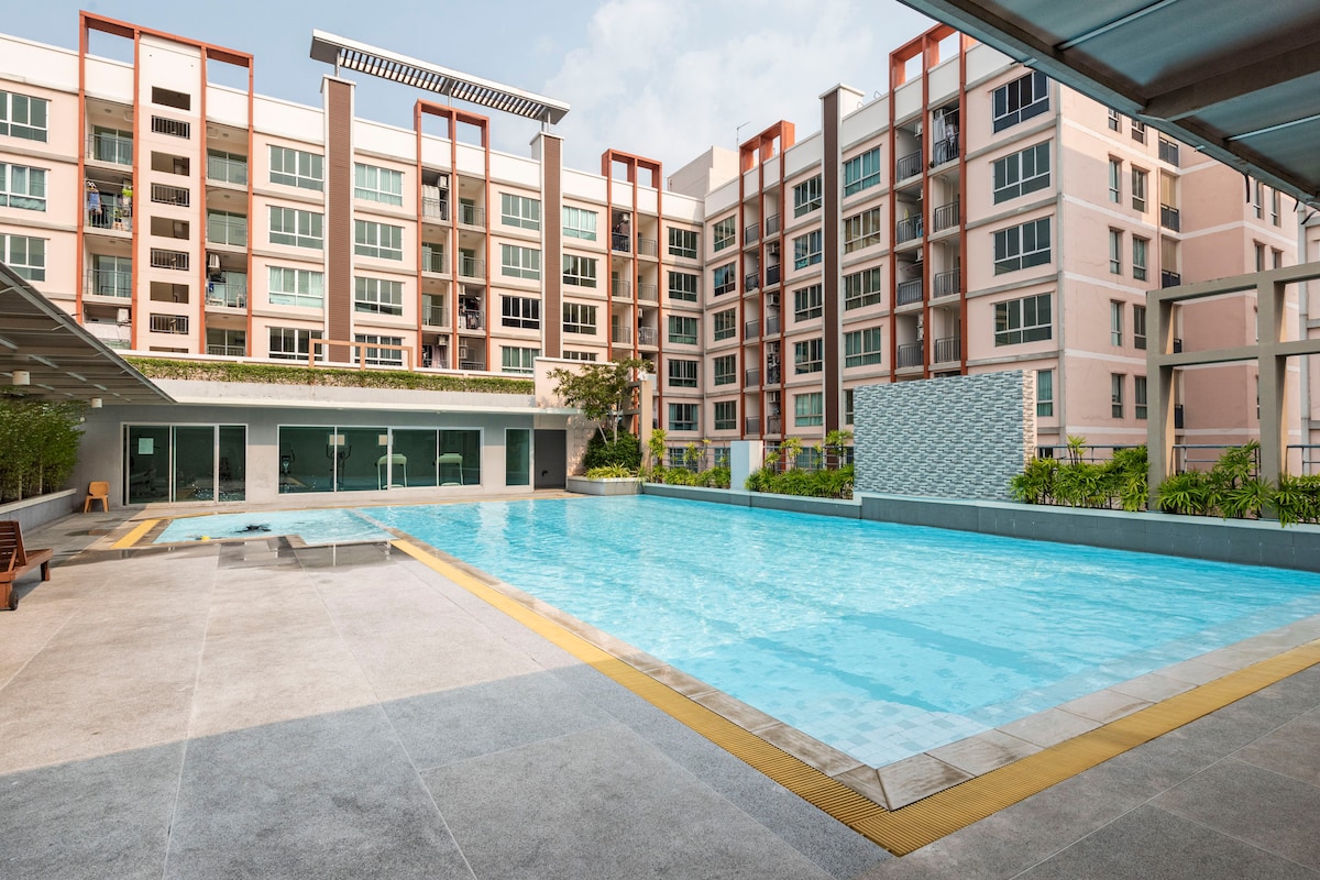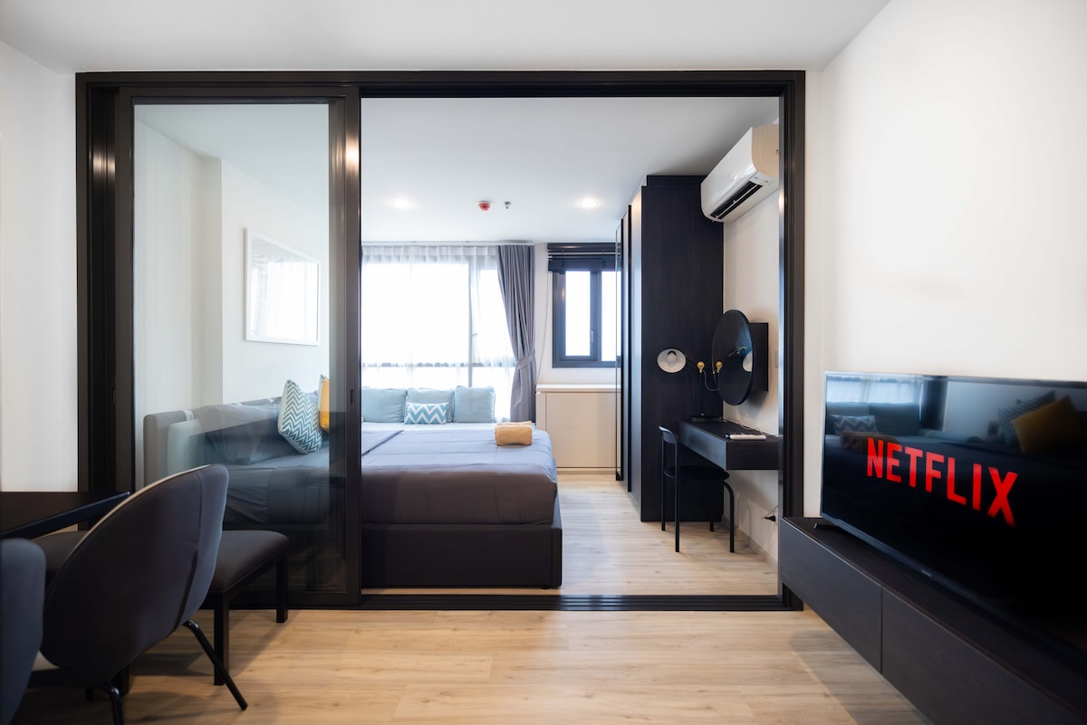 Stay at your new luxurious, meticulously appointed spacious condo in the heart of Bangkok! - 1 month stay optimized for digital nomads - Rooftop infinity pool, gym, workspace and more - Fast 500 mbps wifi Room includes a queen sized bed, cozy separated living space, dining/working table, and all essential toiletries. Equipped with an infinity pool, huge gym, sauna, golf simulator and more. Located a 5 min walk from the MRT, multiple malls, and night markets.