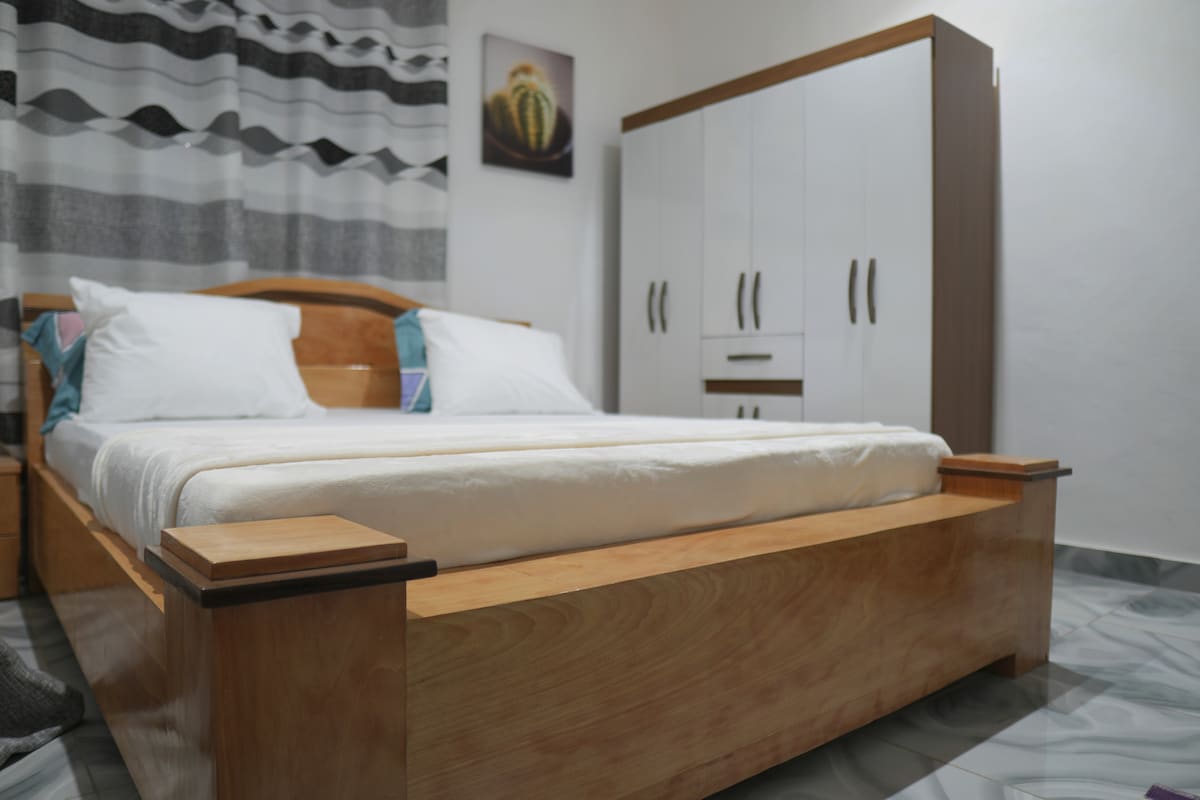 Beautiful, serene apartment unit at Pedu, Cape Coast. Accessible road to the apartment and located in close proximity to major tourist sites in Cape Coast. It is a 2-minute drive to Abura, a 30-minute drive to Kakum National Park, and a 15-minute drive to Cape Coast Castle, Palace, and Beaches. Maximum guests per stay: 2