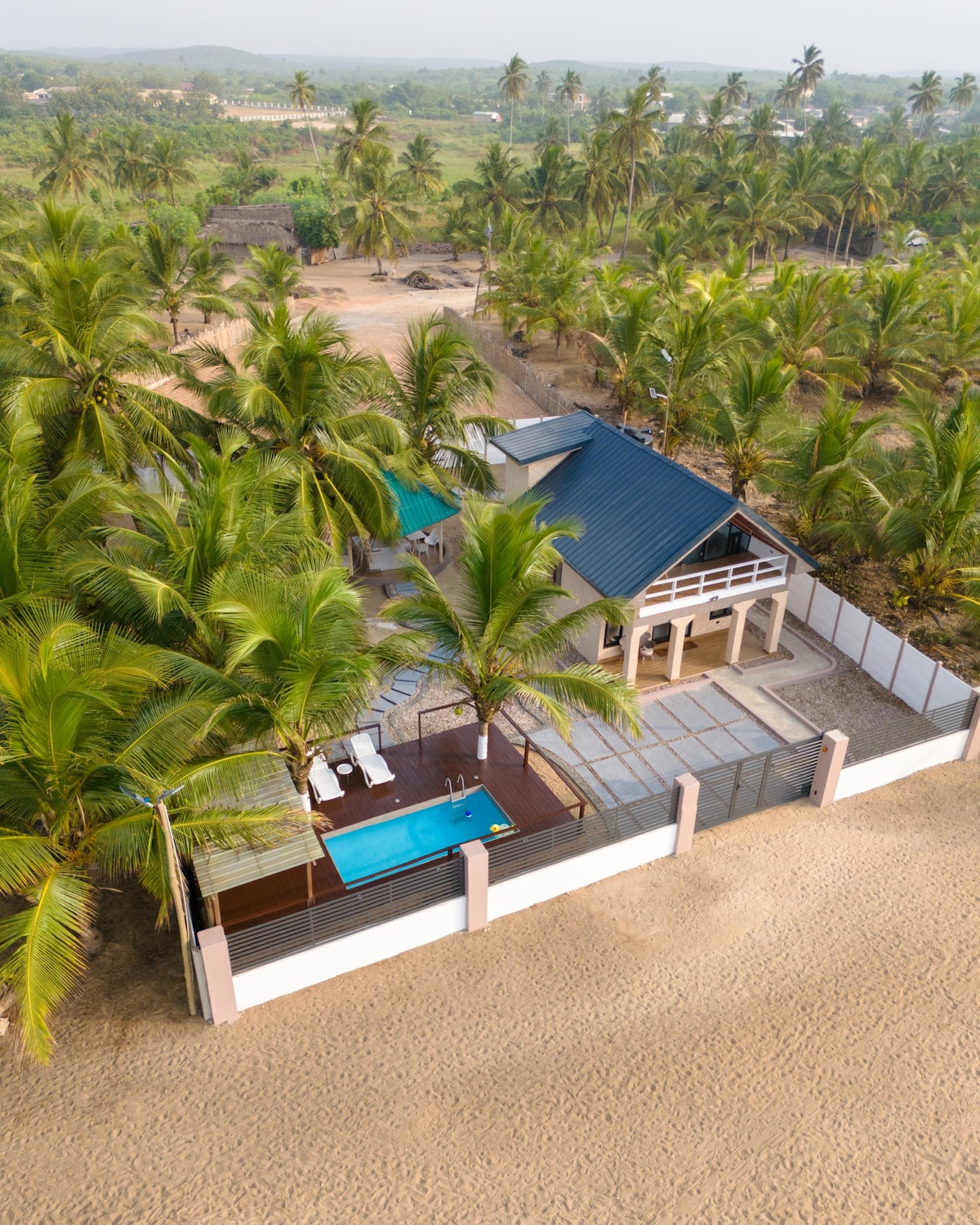 Embark on an extraordinary journey with theParalia, where we craft an unparalleled retreat for those craving the pinnacle of private luxury, get away and seclusion. Nestled in the outskirts of historical charm of Elmina, Ghana, unveils 1 private beach front glass villa at a private 5acres beach front property. Private beach+Private pool+Unimpeded sea views from all areas in Villa+Private front/backyards+Private cleaner/maid+Private chef+Private kitchen+24hr security. Note:Chef's at extra cost.
