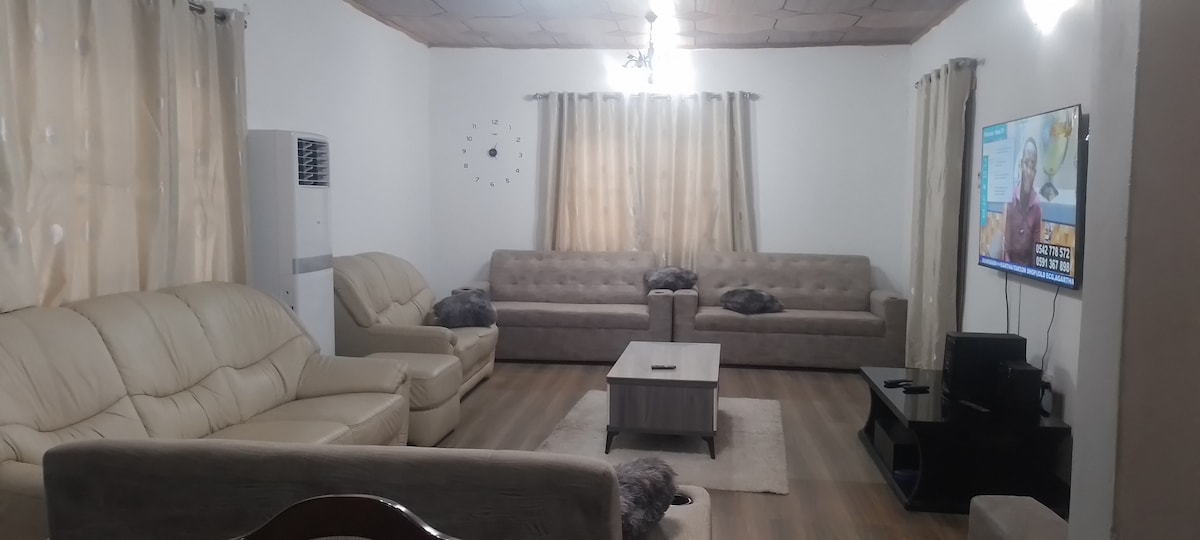 Stay in the heart of Cape Coast at this vibrant, fully furnished 2Br apartment with African decor and all modern comforts. Located on the first floor of a new building. this stylish space offers the perfect mix of culture and convenience. Featuring 2 ensuite bedrooms, electricity, water and wifi included. whether you are visiting for business, leisure, or a long term stay, you will love the authentic African vibe, comfortable setting, and easy access to everything Cape Coast has to offer.