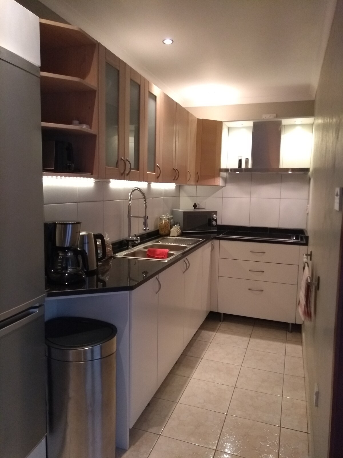 Have fun with the whole family at this stylish home that offers 4 bedrooms and 3.5 baths. It has a very spacious and modern fully fitted kitchen that includes a coffee maker and an instant pot. Each room is air-conditioned and the house is secured by an electric fence and a panic button. WiFi and backup power are available. The house is located 3km from Gateway Mall and within a 2min walk of a local grocery store for all your essentials.