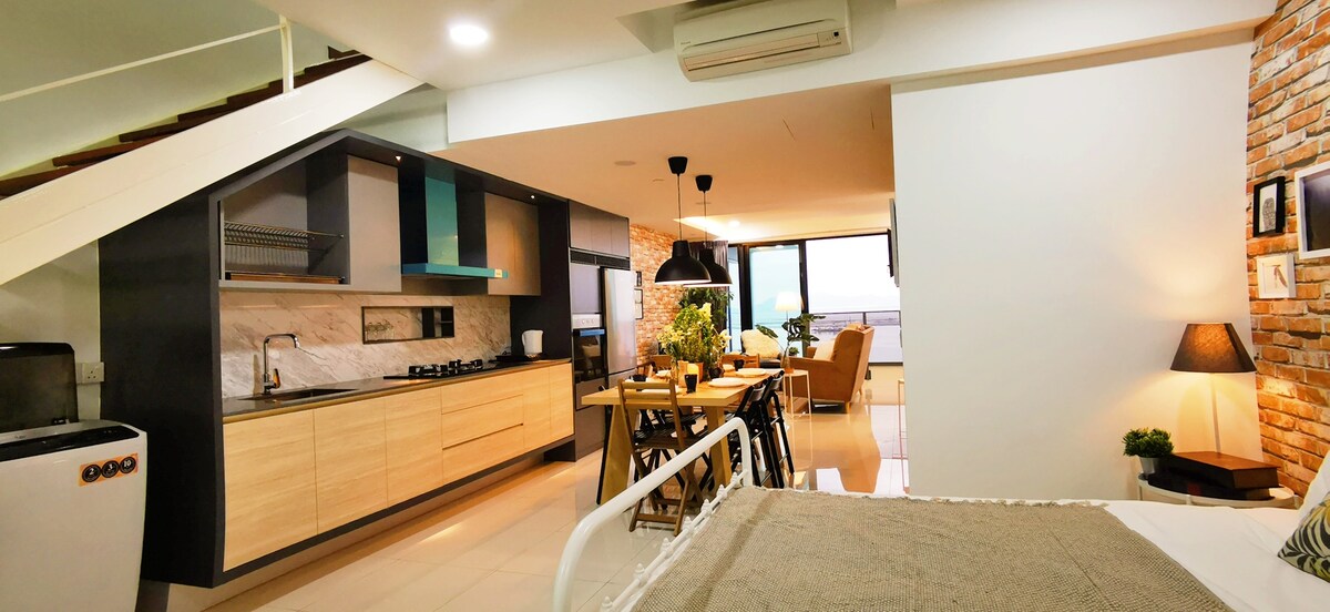 The first-ever homestay in Penang with a massage chair and SMEG Fridge. A cozy 2-bedroom condo in Urban Suites, nestled amongst greenery in the bustling heart of Georgetown. Its strategic location with local shops and restaurants is just moments away. Multiple access routes and walking distance to banks, markets, food courts & etc. State-of-the-art facilities on level 42, offer you a bird's eye view of Penang's architectural marvel, the Penang Bridge.