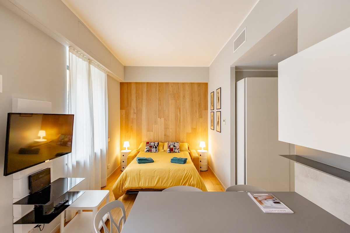 Bellissimo monolocale nel cuore di Porta Venezia. L’appartamento è 40 mq ben divisi tra cucina e zona notte. È in un tipico condominio milanese “a ringhiera” a pochi passi da porta Venezia, una delle mete più rinomate di Milano. La casa è dotata di cucina completa, aria condizionata, connessione ad internet fibra ottica, e finestre con doppi vetri che garantiscono il silenzio nelle ore notturne.