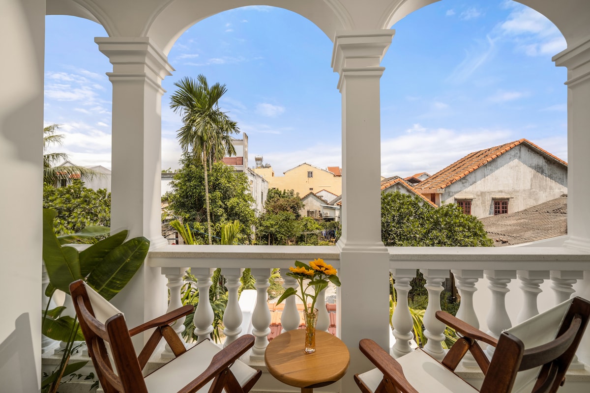 A charming villa in the heart of Hoi An old quarter, where you could experience the beauty of the interference between modern and traditional. Minimalist and warm design with wooden furniture A prime location - just 5 mins to Old Town Charming view of the Romantic Hoai River and garden Rooms have balconies with city view and river view Big beds and soft mattress Beautiful swimming pool with river view Free bikes for going around AC Cafe shop attached ATM, restaurants, shops in walkable distances