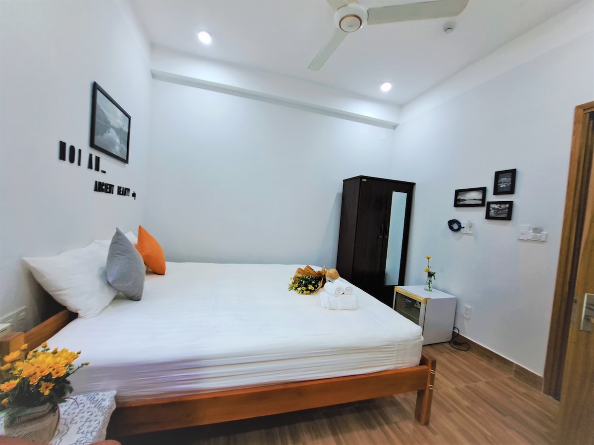 -Chỗ ở gần với các điểm đến không thể bỏ qua tại Phố Cổ Hội An Chỉ 1 phút đi bộ đến Chợ đêm Hội An, 1 phút đi bộ đến bờ SÔng Hoài- khu vực thả hoa đăng và xem lễ hội đèn lồng Cơ sở vật chất trong phòng đầy đủ cho bạn cần: TV 32 in , giường nệm và chăn đắp bình dân Ban công riêng Xe riêng đón bạn từ sân bay về homestay với mức phí nhỏ chỉ từ 13usd/private car Khu vực trung tâm được đánh giá rất tốt về vị trí, an toàn Miễn phí gửi hành lý Đi lại tự do 24 giờ