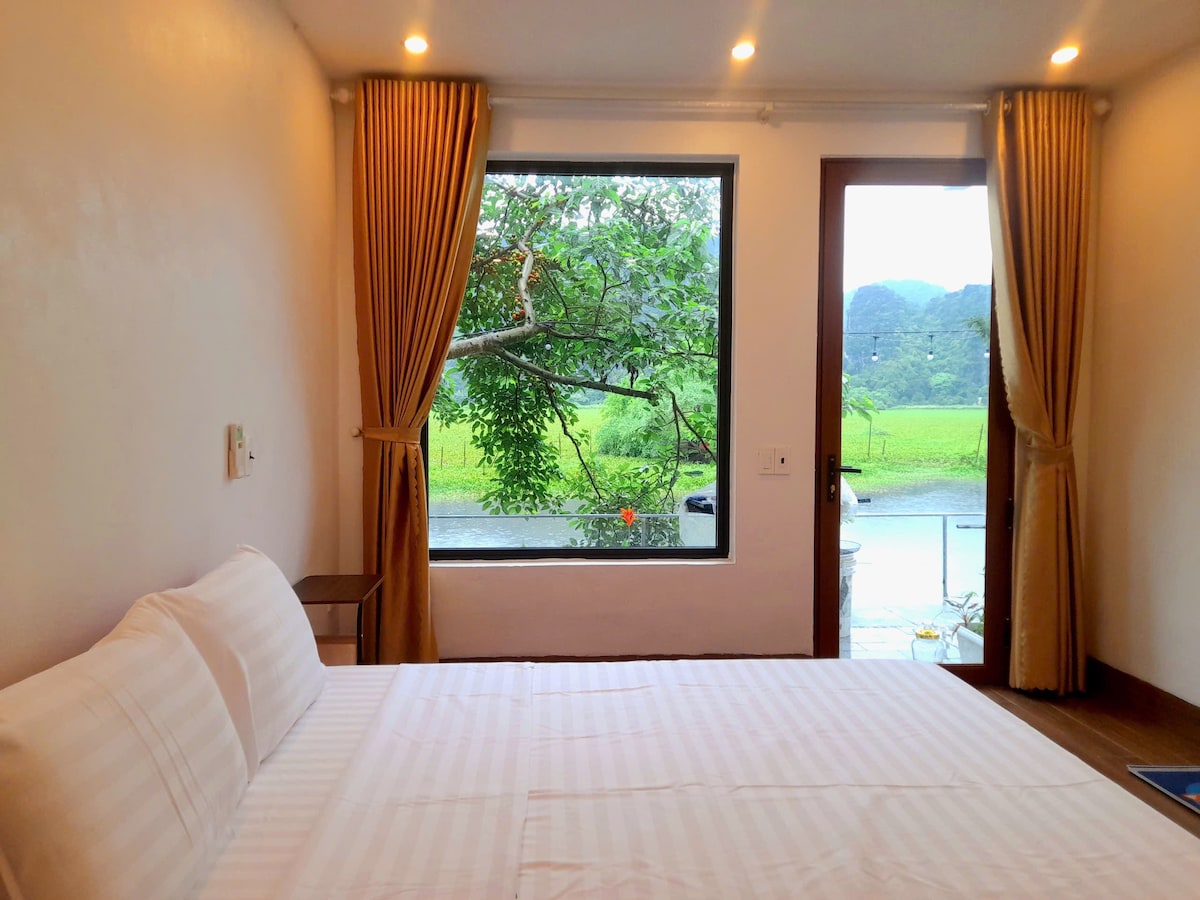 Escape to our charming double bungalow at Ninh Binh Family Homestay, designed for comfort and tranquility. This cozy retreat offers a perfect blend of modern amenities and traditional Vietnamese charm, making it an ideal getaway for couples . Enjoy the serene ambiance of our lush gardens and take a refreshing dip in the pool. Experience warm hospitality from our family and explore nearby attractions like Bai Dinh, Trang An, Hang Mua, Tam Coc, Hoa Lu Ancient Capital, and Cuc Phuong park.