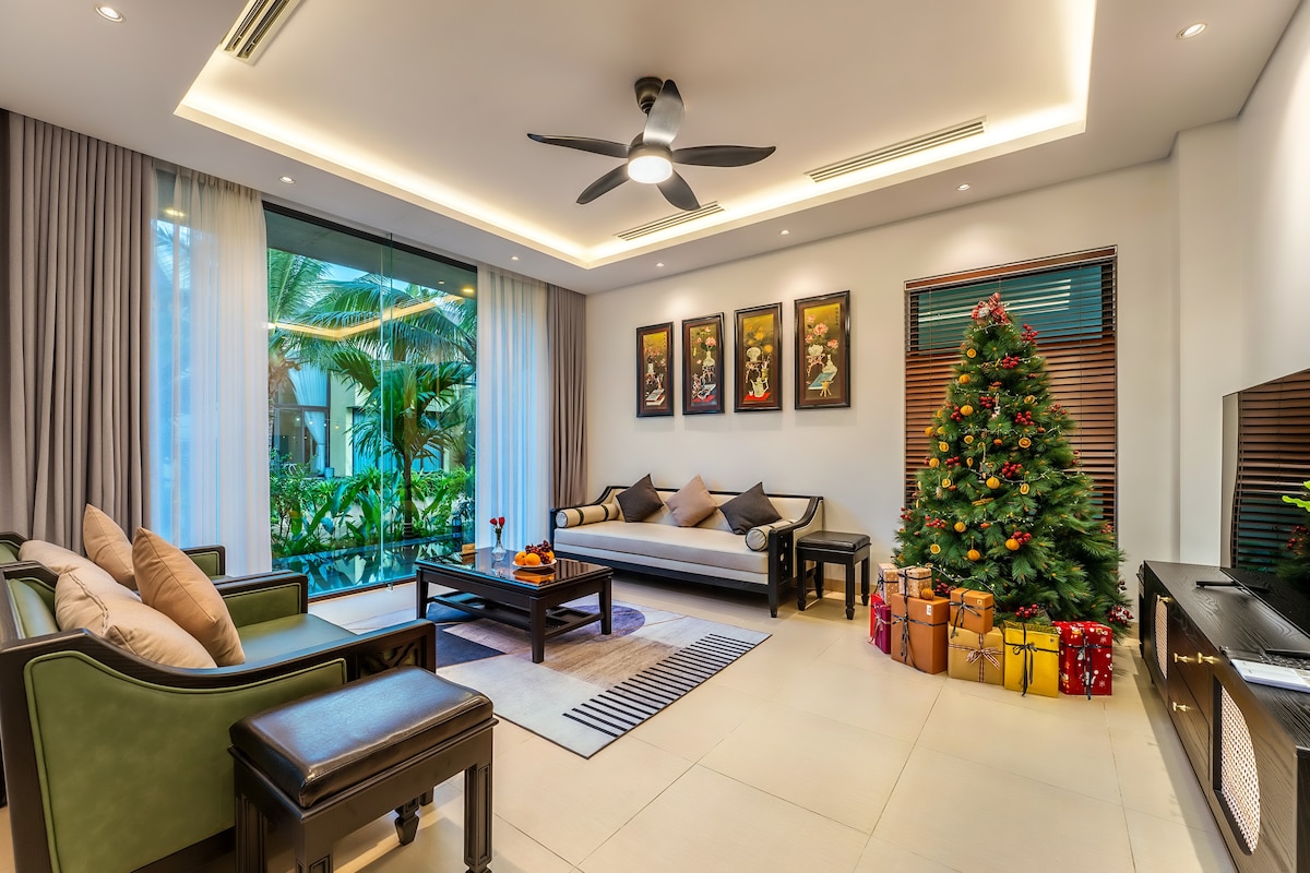 Tucked away in the heart of Hội An, Central Vietnam, this serene 5-bedroom villa is your private escape amid endless rice fields, where water buffalo graze and flocks of white birds flying by . Only 2km from the Hội An Ancient Town and An Bang beach, it offers floor-to-ceiling glass, natural wood interiors, a private pool, and open-plan living. A perfect haven for soulful retreats, joyful reunions, or meaningful celebrations—where every sunrise feels like a blessing.