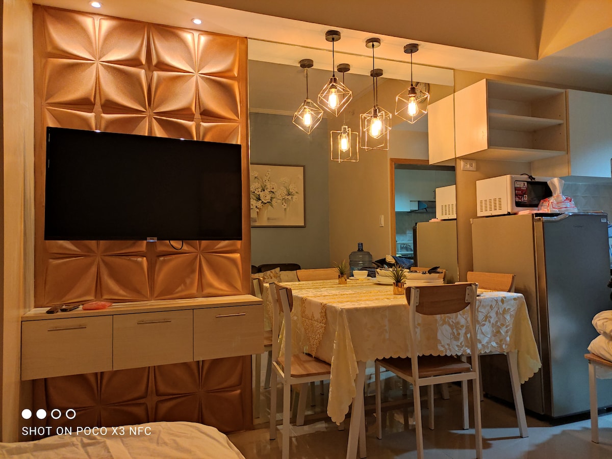 Enjoy a stylish experience at this centrally located place. Relax in this entirely cozy, modern and vibrant condo unit that is conveniently located near Mactan International Airport. Where it is close to everything like restaurants, coffee shops, laundry shops, malls and supermarket. - 3-5 minutes away from Mactan Airport - High-Speed Internet up to 200 Mbps - 65 inches TV with free Netflix - 1 Bedroom w/ 1 queen-size bed & 1 Foldable double size bed - Washing Machine -Fully equipped kitchen