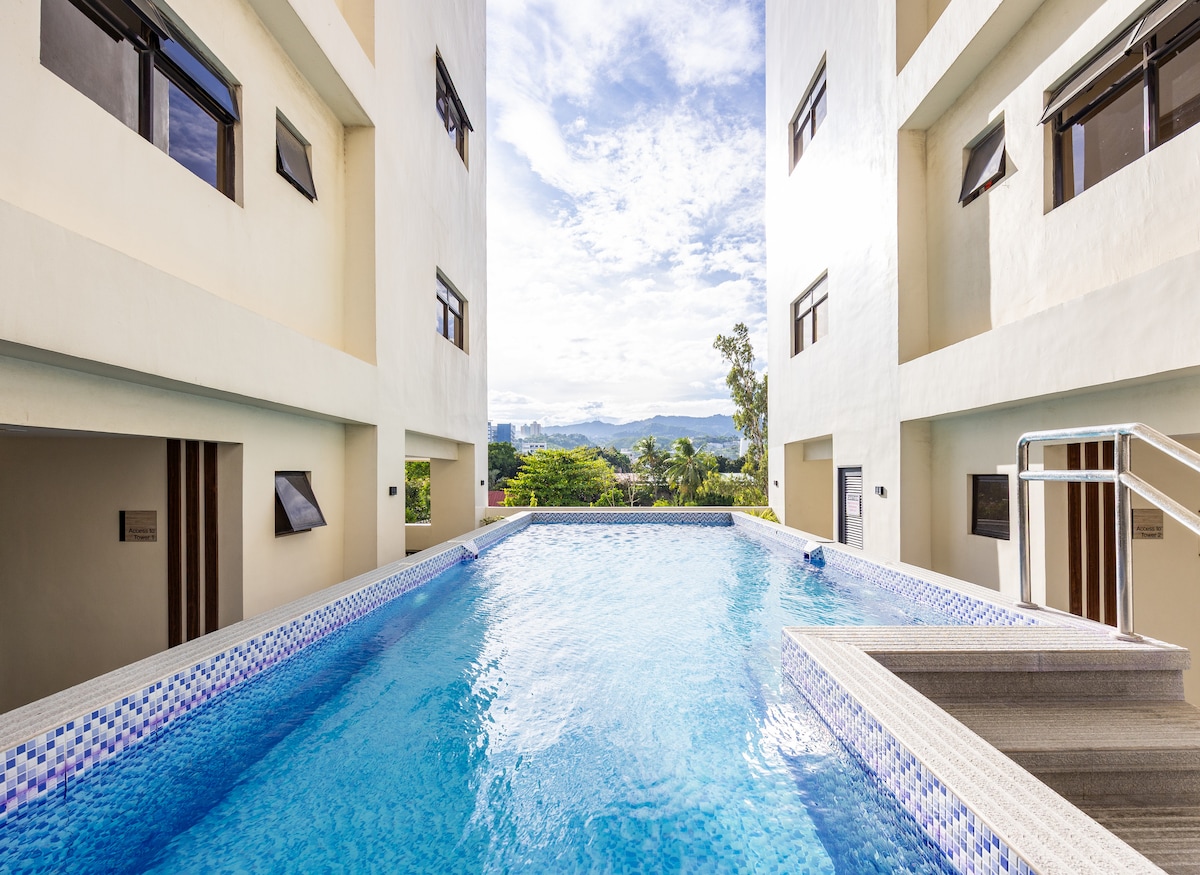 Amazing location for this studio apartment located at Cebu IT Park, Apas, Lahug, Cebu City. The apartment has fiber internet, air conditioning, queen sized bed, working table, dining table for two, toilet and bathroom with complimentary toiletries, hot shower and a kitchen. The apartment also includes free use of swimming pool, jogging path and outdoor gym.