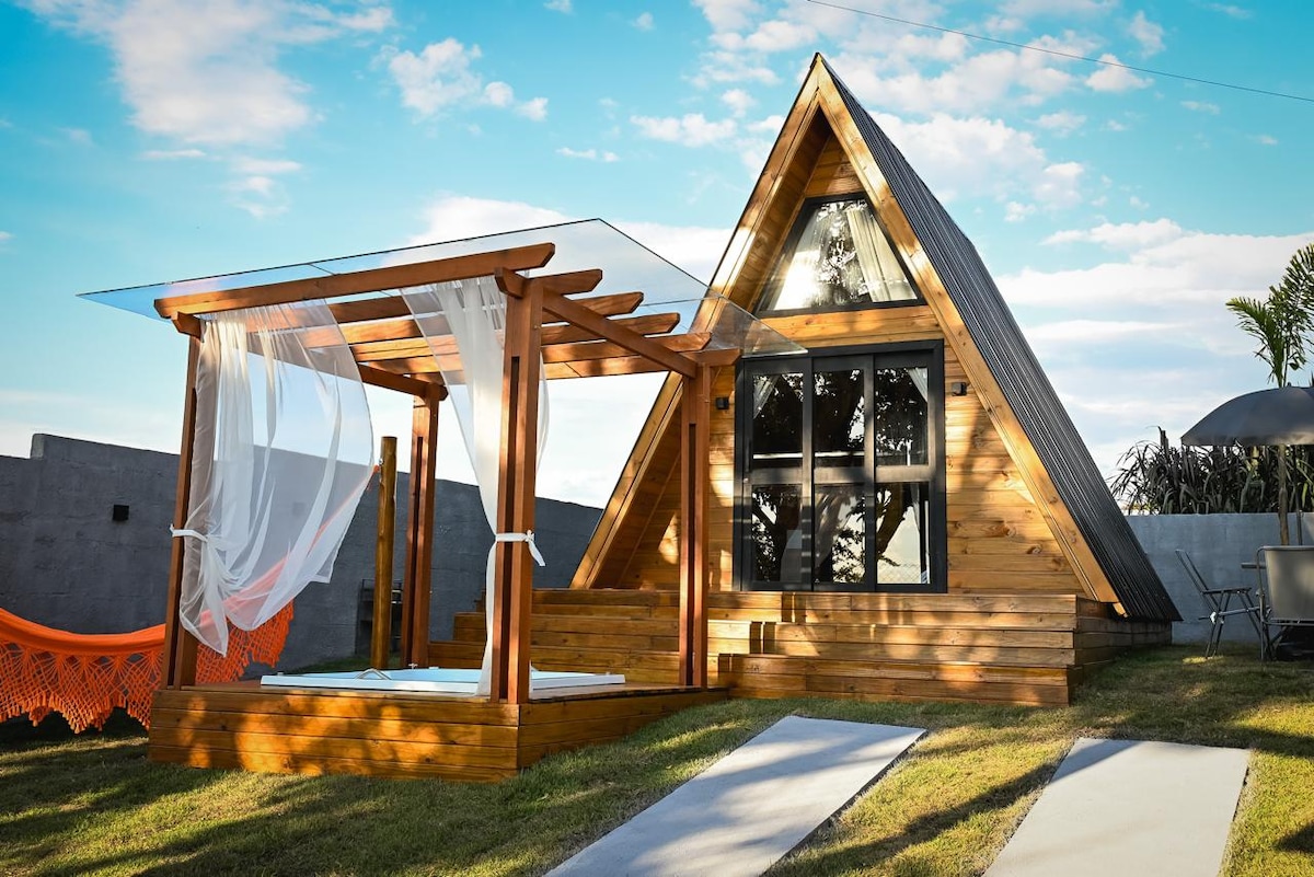 🌿 Viva o Luxo do Simples ! Refúgio em Itú🌿 🏕️Cabana construída em madeira em um terreno de 80.000metros, ideal para casais relaxarem em contato com a natureza.Quarto c/ cama Emma Queen Size, sala com sofá-cama,cozinha funcional,ar-condicionado quente/frio e internet Starlink.Destaque para o banheiro com vista e Banheira de imersão no deck🛁 À noite, aprecie as estrelas e a lua, ou reúna-se ao redor da fogueira🔥 para momentos únicos.Conforto e paz em meio ao verde.🌙🌲 Viva essa experiência⭐️