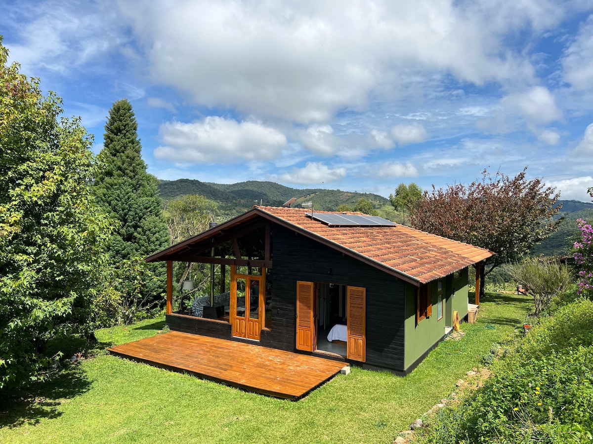 O Chalé Jardim do Alto é um refúgio no alto da montanha. Destino perfeito para casais que buscam relaxamento e momentos únicos. Incluso: Delicioso café da manhã, feito pela Chef Paula Paul, formada em Boulangerie, na Escola Le Cordon Bleu. Todos os pães e bolos são feitos na casa. O que torna sua estadia especial: • Café da manhã preparado pela Chef e entregue no chalé (entre 7h e 10h). • Anfitrião atencioso • Vista incrível • Banheira e Amenities