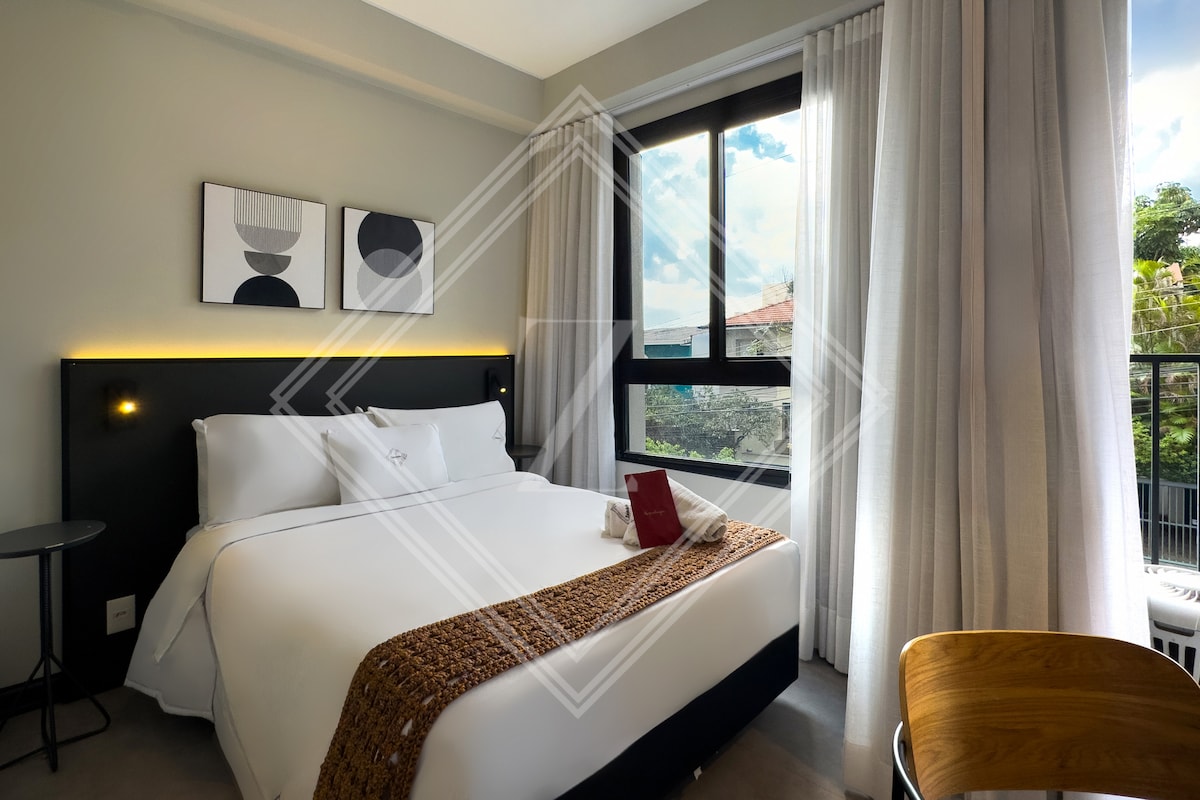 O loft 1002 do ECOS é o refúgio perfeito para quem busca conforto, qualidade e sofisticação. Ideal para uma experiência inesquecível, seja sozinho ou acompanhado, com todo o aconchego que você merece. Com uma decoração refinada e pensada nos mínimos detalhes, o espaço é ideal tanto para momentos de descanso quanto para quem precisa de um ambiente agradável para home office.