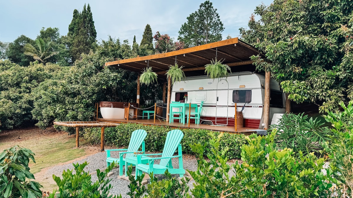 Acomodação no trailer foi pensada em proporcionar experiências e momentos inesquecíveis para os hospedes. O Trailer esta equipado com cama, mesa, sofá, armários, cozinha e banheiro além de muitos acessórios e utensílios. Na parte externa há um deck com banheira, mesa com 2 cadeiras , churrasqueira portátil e um fogão com forno a gás. Há também um banheiro externo. Uma rede suspensa para os que apreciam contemplar o por do sol e uma bela fogueira para aquecer a noite.