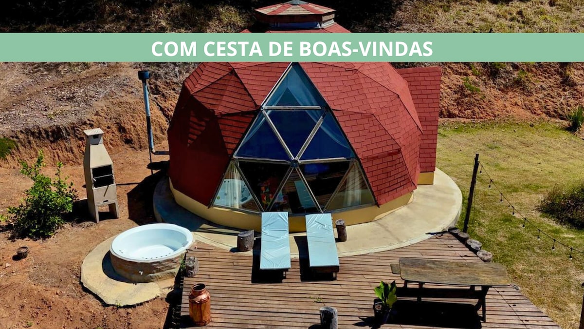 Chalé inaugurado em Agosto 2023. Reconecte-se à natureza neste lugar inesquecível. Completo e confortável chalé em formato de Domo Geodésico, todo em madeira. Deck suspenso com banheira aquecida, churrasqueira, gramado e área de fogueira externa. Um excelente local para descanso ou um encontro romântico...