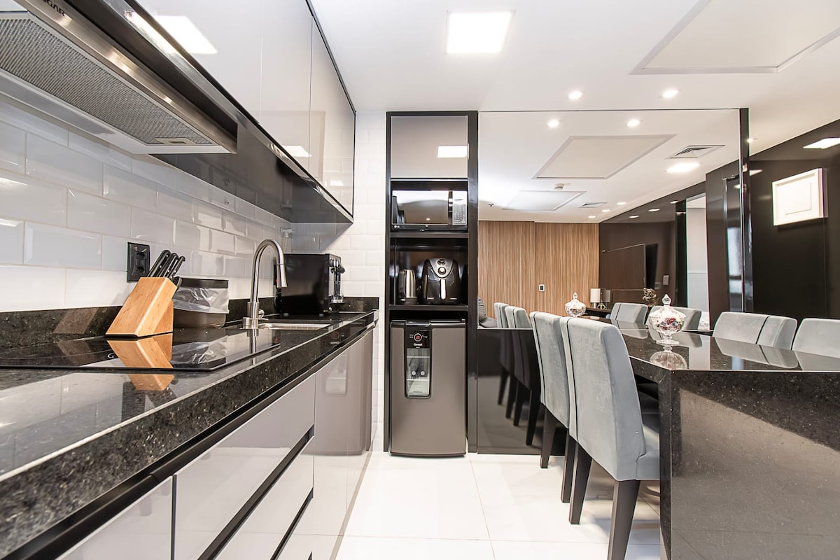 Experience One Eleven in Vila Olimpia. This modern apartment features large windows with breathtaking city views and natural light. The unit boasts 600 Mbps internet and a 4K HD TV. For total comfort, it has a Hot/Cold AC system: 27,000 BTU/h unit in the living room and 10,000 BTU/h in the bedroom. The bedroom is quiet and dark for a restful sleep. Impeccably maintained, you’ll be walking distance to top restaurants and business hubs—a safe, upscale retreat with a stunning urban backdrop.