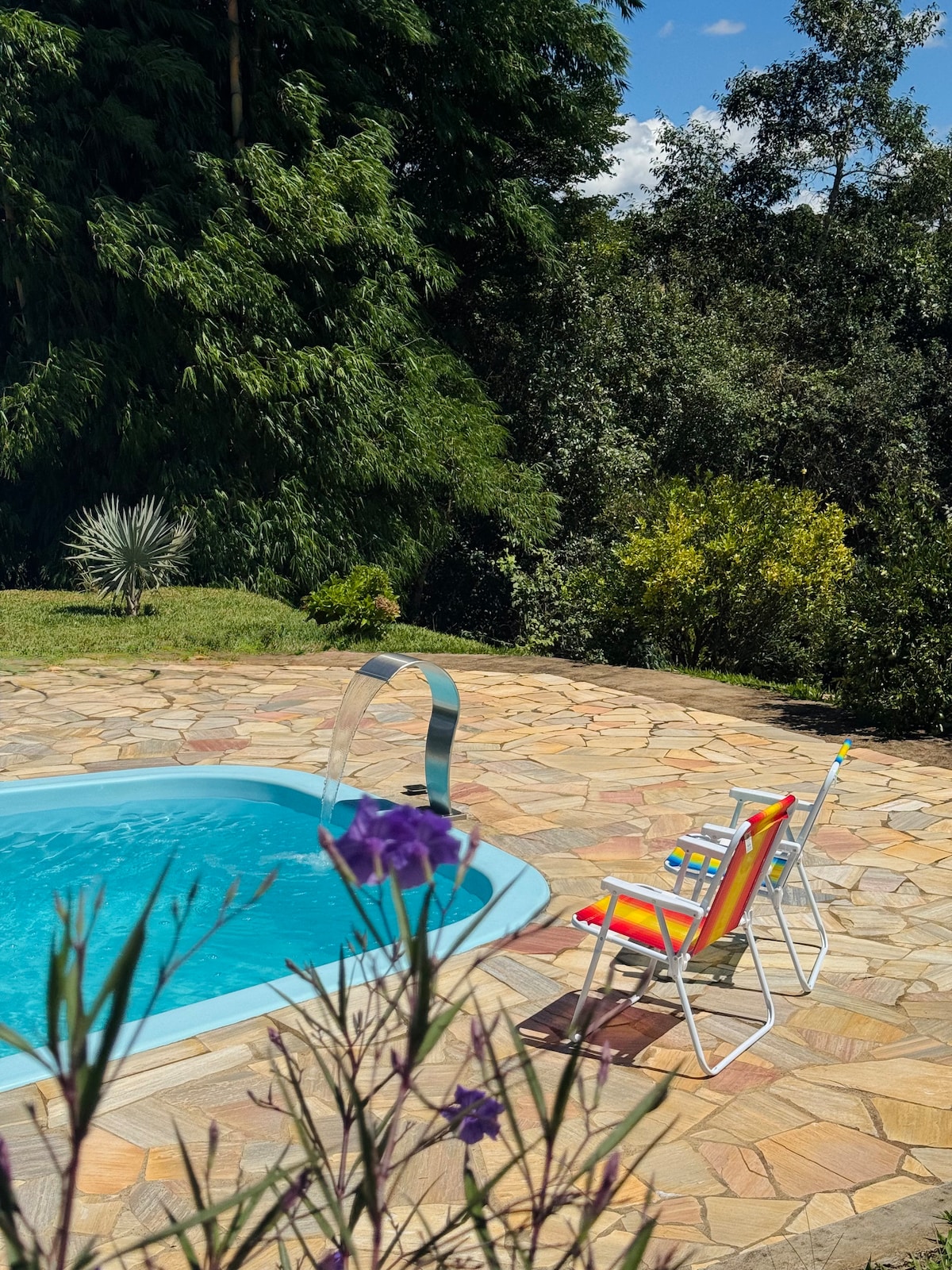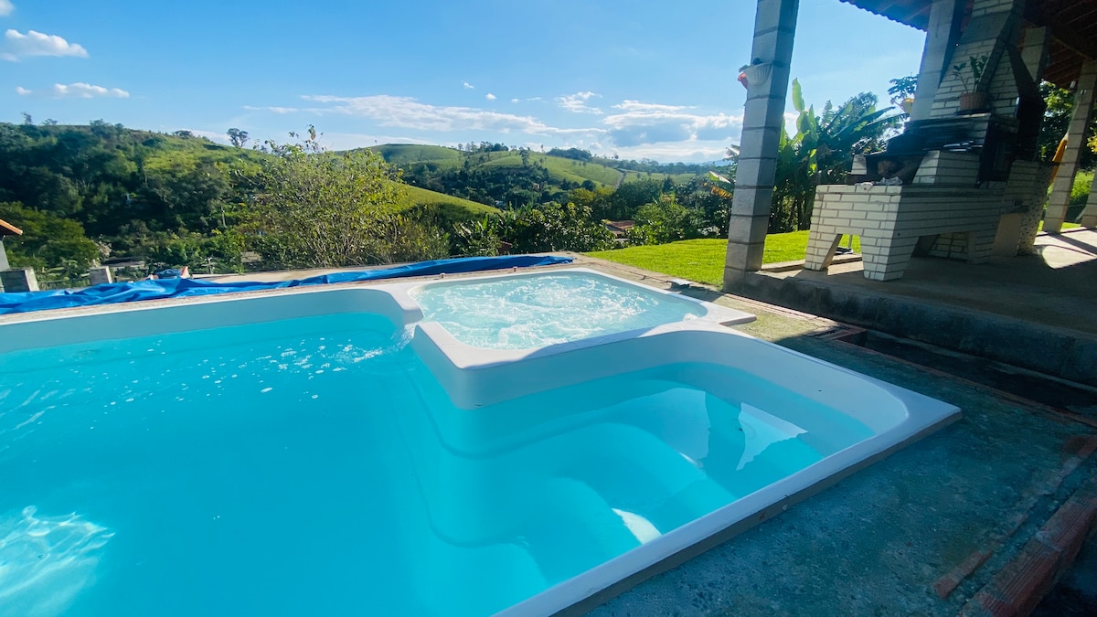 PRICES ARE FOR ACCOMMODATION ONLY. CONTACT US FOR EVENTS (OVER 20 PEOPLE). There are over 200,000 m2 of space with a pond, the Dona Flor Fountain, a basketball court, a soccer field, a slide, seesaws, a sand pool, a grass sled track, trails to the top of the mountain with viewpoints, as well as a party room with another kitchen, barbecue area and wood-fired pizza oven. The house can accommodate up to 8 people. We are right on the edge of the ancient volcano. Search for our posts on media