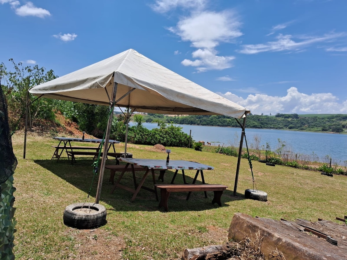 水坝旁的迷人帐篷