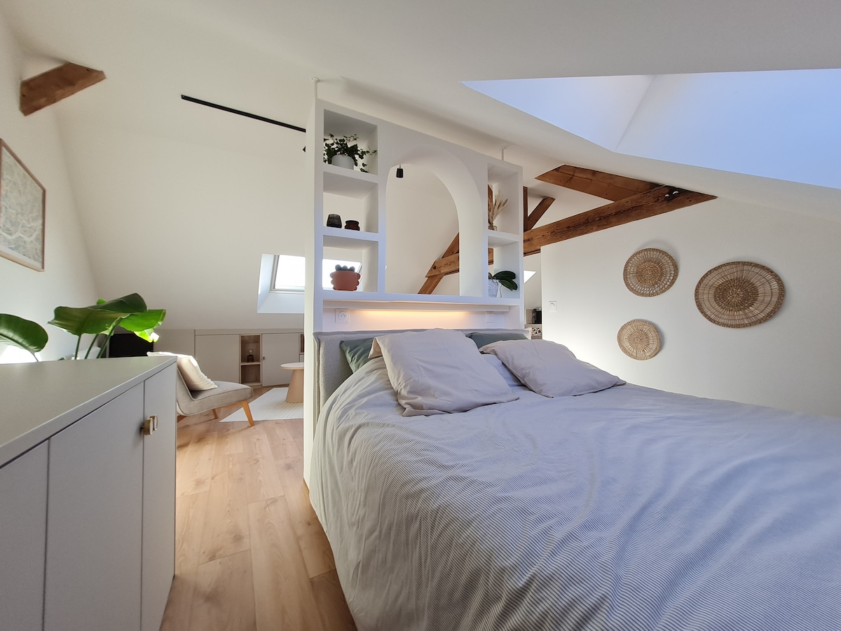 Studio mansardé d'exception face au Château des ducs. Bienvenue dans un cocon unique en plein cœur de Nantes, idéal pour une escapade romantique, un séjour détente ou une immersion dans l'histoire de la ville. Ce studio mansardé de 48 m au sol (22 m loi Carrez), niché sous les toits d'un ancien hôtel particulier du 18eme, siècle vous offre une vue directe sur les majestueux clochers du Château des Ducs de Bretagne et des toits de la Cathédrale pour une expérience aussi cosy qu'inoubliable.