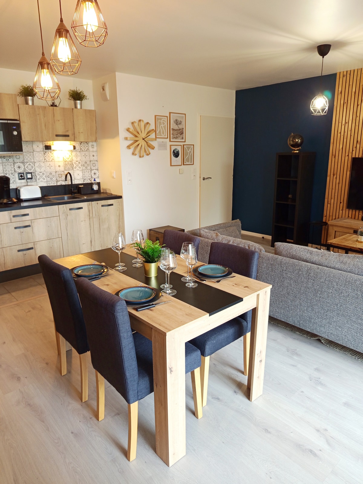 Dans une petite résidence calme, de trois logements, l'appartement se situe au rez-de-chaussée. Belle pièce de vie lumineuse, avec une décoration moderne et entièrement neuve. Canapé convertible en lit et confortable! Cuisine aménagée et équipée. Une chambre de 14 mètres carrés, une salle de bain, avec douche à l'italienne. Vous disposerez également d'un parking privatif, sécurisé par un portail électrique, et d'un jardinet pour les fumeurs. Barbecue possible!