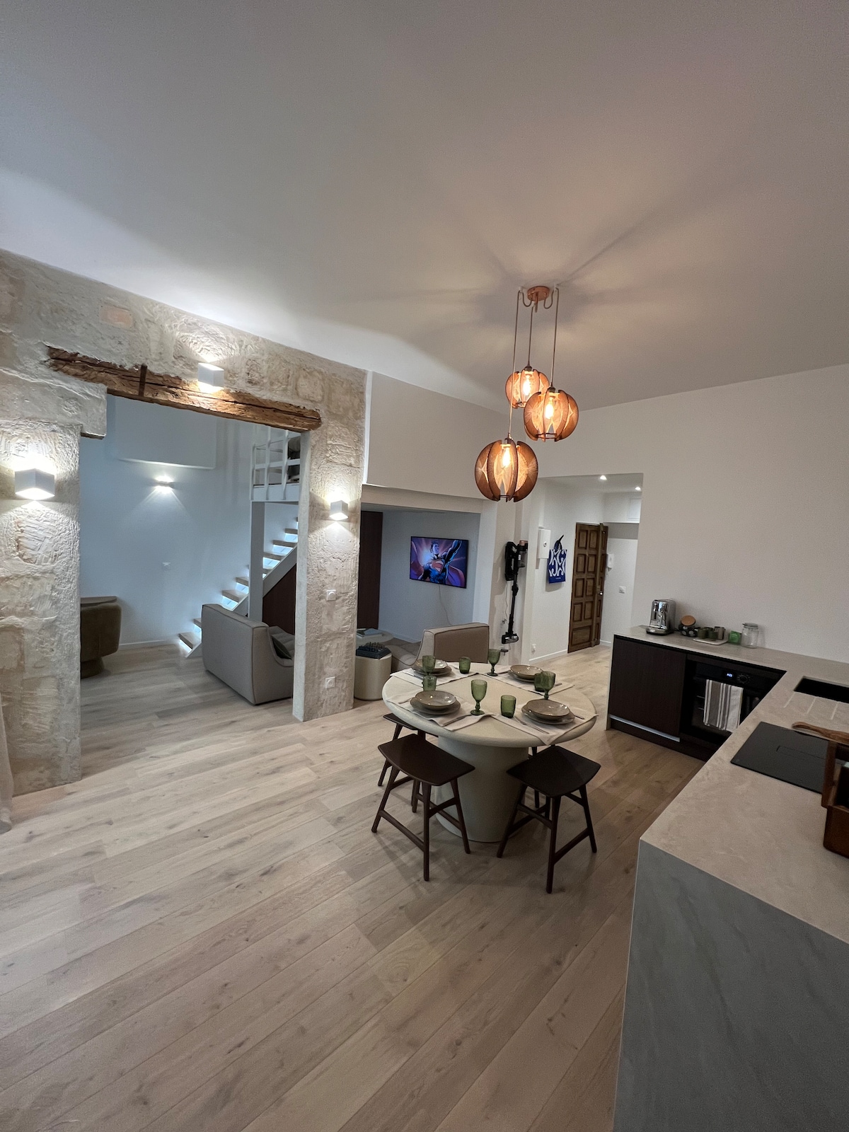 Idéalement situé au cœur de « L’Écusson », le centre historique de Montpellier, cet appartement réunit une magnifique salle à manger avec cuisine ouverte dans une architecture 17ème siècle à deux pièces voûtées du 14eme siècle : Une chambre avec coin bureau et un salon musique et cinéma bénéficiant d’une excellente acoustique. Un patio avec verrière ouvrante permet l’accès à la salle d’eau avec très belle douche à l’italienne.