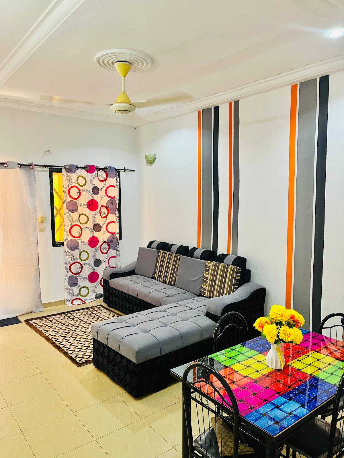 Ce logement exceptionnel affiche son style haut et fort.Simplifiez-vous la vie en restant dans ce logement tranquille et bien situé en plein coeur de Ouagadougou à 3 mn de Ouaga 2000 le quartier le plus huppé et à 5 mn de l’aéroport . Les supermarchés comme Lyza market et Marina market sont à 3 mn de l’appartement. Nous mettons à votre disposition un wifi gratuit , une dame de ménage 6/7 et des vigiles qui seront sur place 24/24. Parking sur place disponible