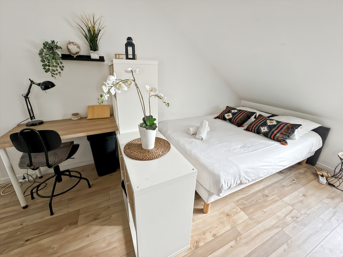 Situé en plein cœur de Rennes ce studio vous offre une élégante association entre le charme de l'ancien et le confort de la modernité. Cet appartement de charme récemment rénové, est entièrement mis à votre disposition avec un espace salon-bureau pour se détendre, une cuisine toute équipée donnant sur le séjour avec un espace nuit doté d'un lit Queen size et une agréable salle d'eau.