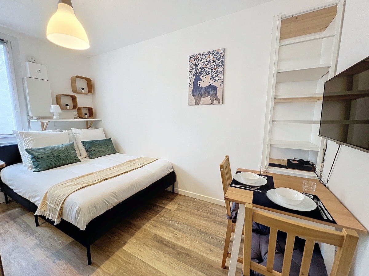 Situé en plein cœur de Rennes ce studio vous offre une élégante association entre le charme de l'ancien et le confort de la modernité. Cet appartement de charme récemment rénové, est entièrement mis à votre disposition avec un espace salon-bureau pour se détendre, une cuisine toute équipée donnant sur le séjour avec un espace nuit doté d'un lit Queen size et une agréable salle d'eau.