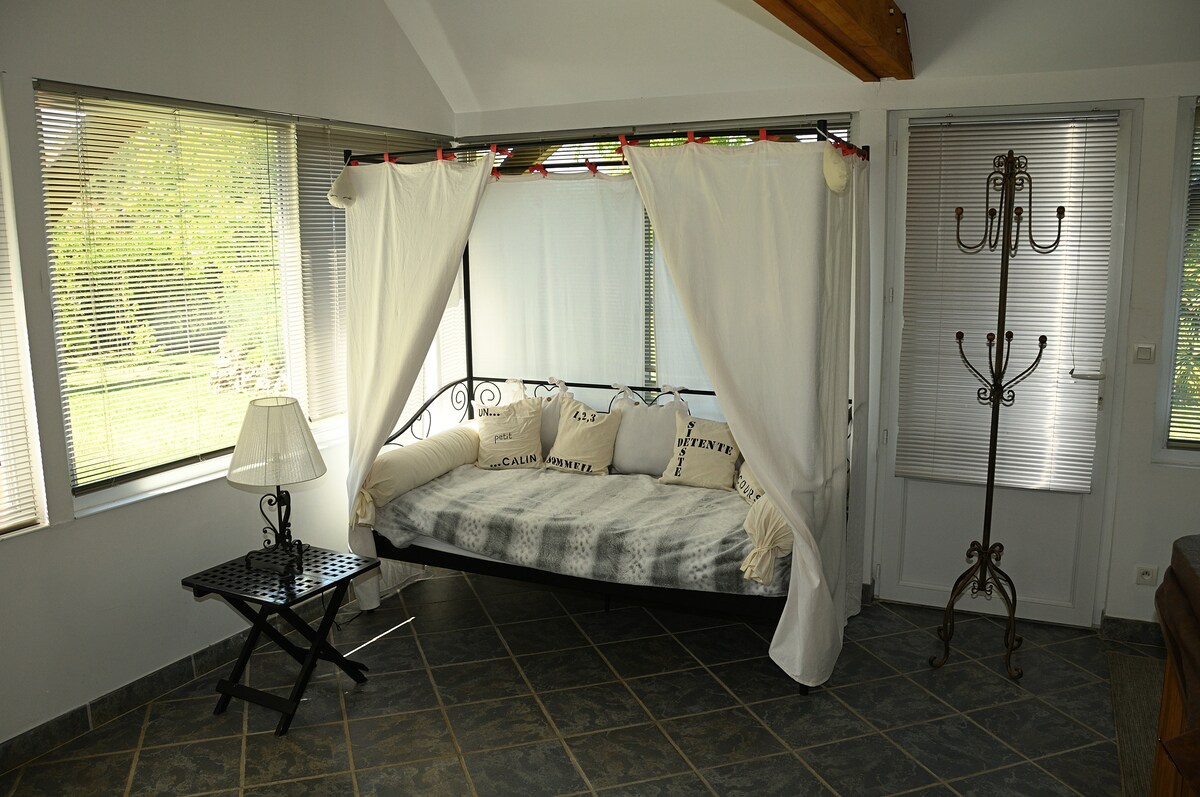 Au cœur du perche sarthois à Sceaux sur Huisne, ville d'eau à l'époque romaine, derrière l'église au clocher si particulier, se trouve le lavoir de "la ferme du prieuré". Ce petit bâtiment et son bassin alimenté par une source, font partie d'un espace très préservé et verdoyant. A cents mètre en contrebas se trouve les vestiges des thermes gallo-romains. La chambre a été installée dans un ancien lavoir datant du 15ème siècle, c'est donc une nuit "pieds dans l'eau" que l'on vous propose.