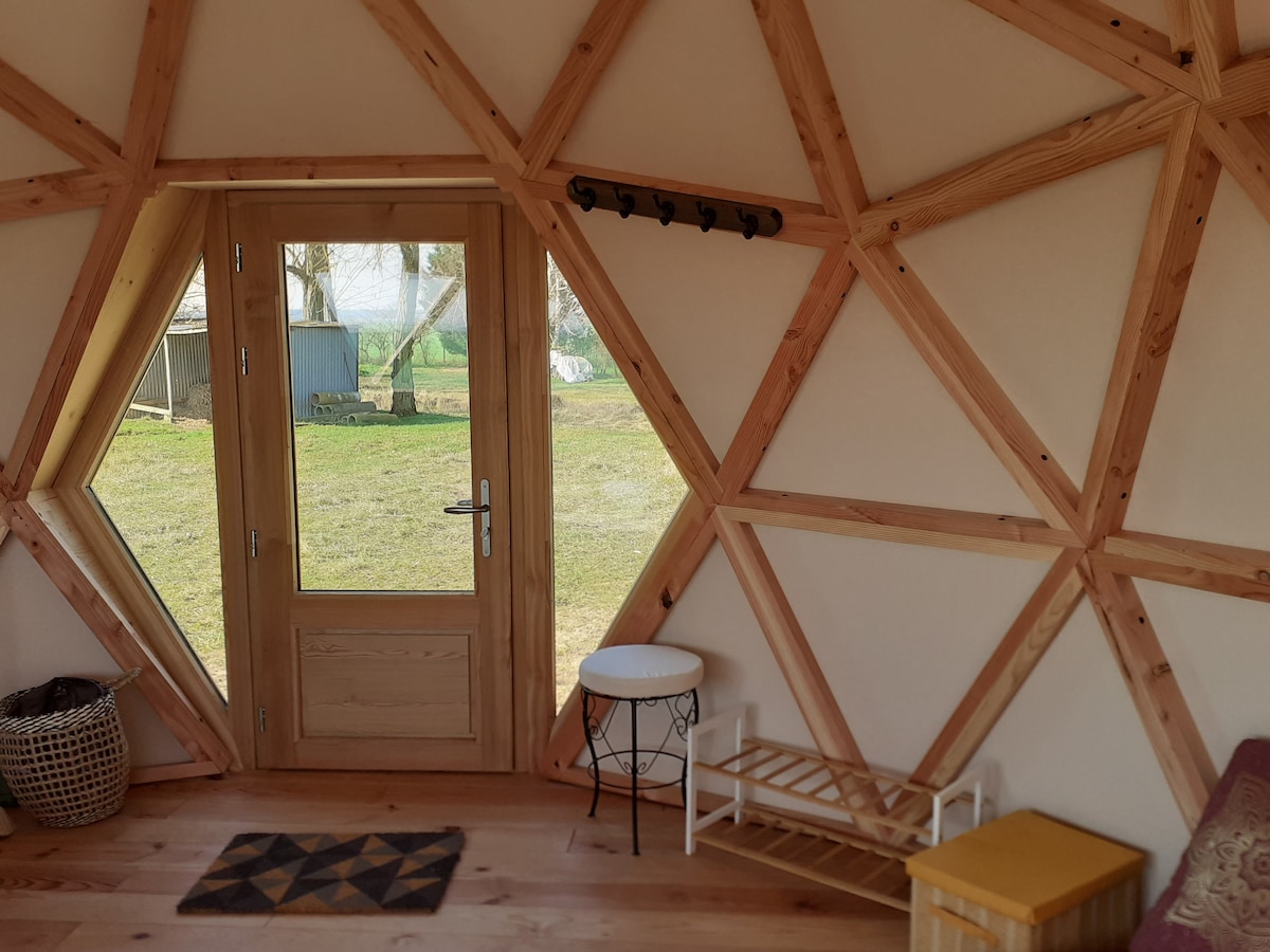 Venez vivre une expérience unique. Observer les étoiles aux chants des oiseaux nocturnes. Notre dôme géodésique de luxe Sérénité est située dans un cadre écologique et nature. Salle de bains et toilettes sèches privées intégrées au logement. Petit déjeuner maison bio livre à votre porte! *Possibilité de privatiser notre Bain Nordique chauffé au poêle à bois à 38°. Tarif: 15 euros par personne , pour 1h de pure détente. Chaque session de bain nordique est privative.