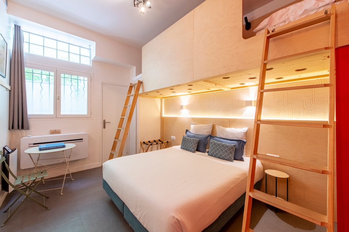 Luxurious and intimate, this secluded urban oasis is tucked away on a residential street in bustling Bastille, one of the most authentic and hippiest areas of Paris. Surrounded by some really good restaurants, farmer markets, designer stores and art galleries, it offers all the amenities you would find in a 5-star hotel, including a secluded private outdoor patio with its lush greenery. Famous Place des Vosges and Le Marais are just a short walk away.