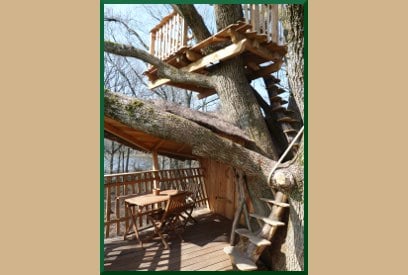 带户外座椅的树屋