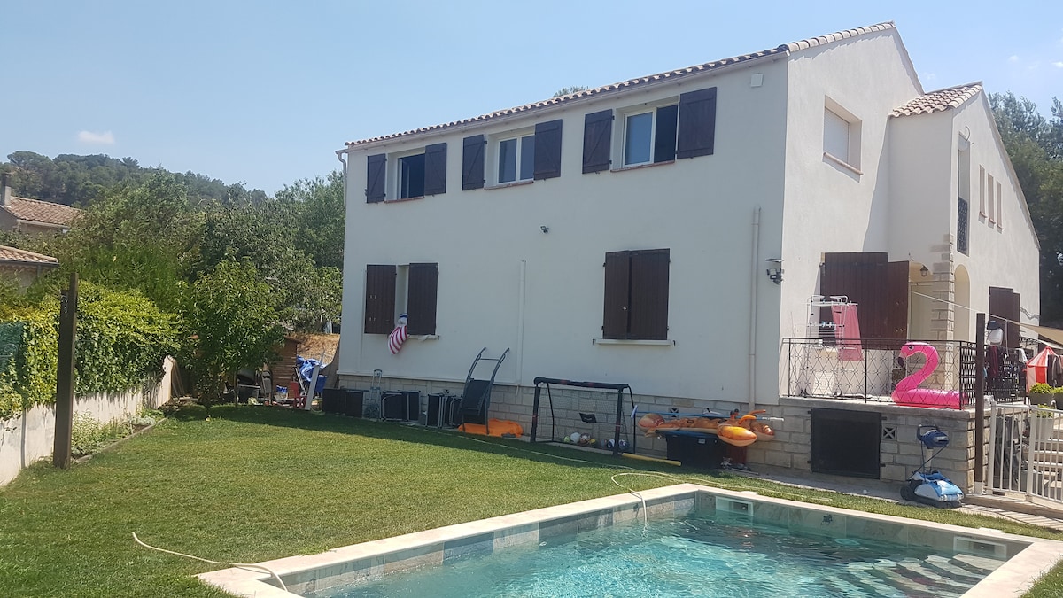 Maison confortable, moderne, lumineuse, spacieuse et entièrement climatisée. Elle peut accueillir 7 personnes et est située à seulement 5 minutes du centre d'Aix en Provence Ses atouts: quartier calme, une piscine à débordement, un tapis de course, 2 salons avec TV... Pool House avec barbecue. Espace de jeux pour les enfants, terrain de pétanque... Mais aussi, la mer, Le luberon et Marseille à seulement 30 minutes. Parking gratuit. Piscine chauffée si besoin de mai à septembre.