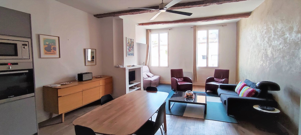 Au coeur du centre historique, idéalement situé, le plaisir d'accueilllir dans ce très rare logement spacieux aux 2 exceptionnelles terrasses bien exposées, offrant des vues rares sur toute la ville. Lumineux, décoration raffinée, il comprend 2 chambres avec chacune un lit double 160x200. Le logement est tout confort, climatisation, cuisine toute équipée, cafetière Nespresso, lave-vaisselle, lave-linge, cave à vin de service etc.., TV et box internet, linge de maison fourni.